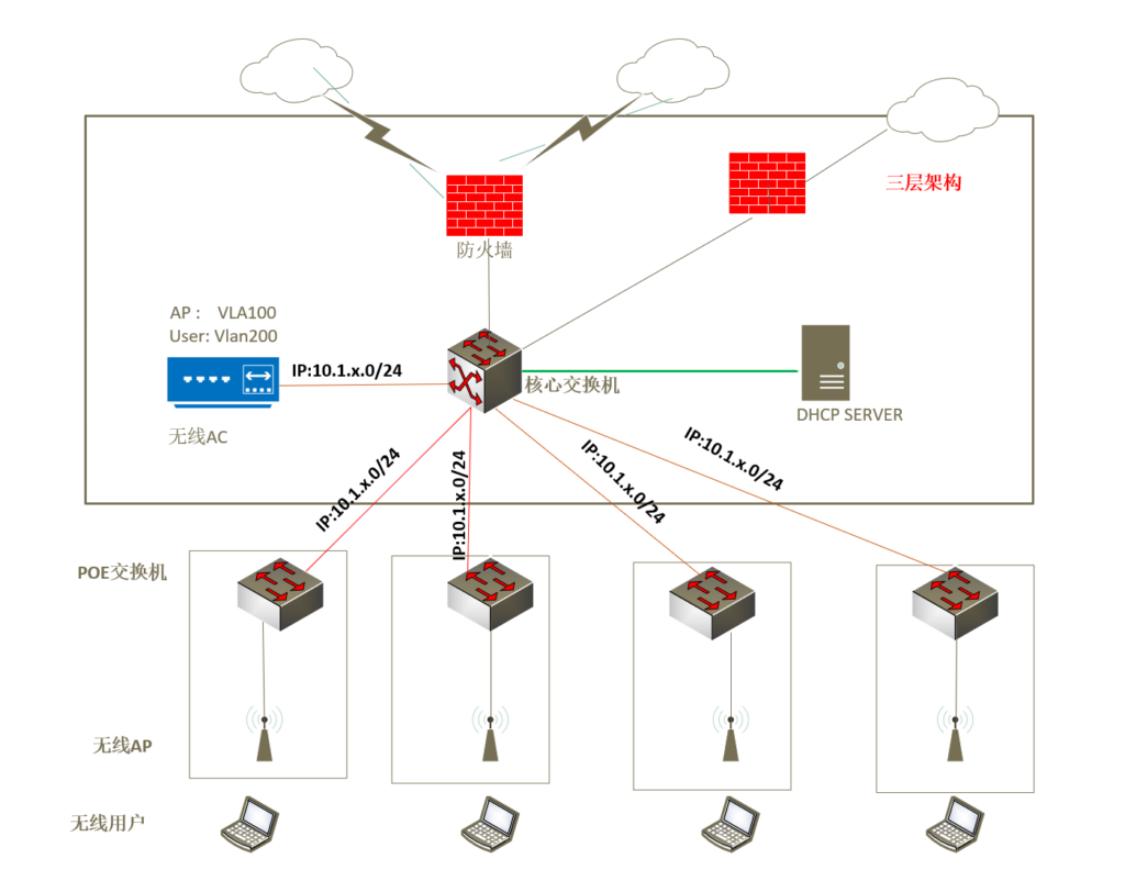 直接转发和隧道转发之间的配置调整,除了VAP下的转发方式的配置调整外,最主要的就是各接口下管理VLAN和业务VLAN的配置调整。