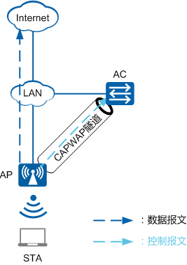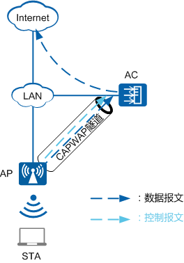 | 直接转发 | 业务数据不需要经过AC转发,报文转发效率高,AC所受压力小。 | 业务数据不便于集中管理和控制,新增设备部署对现网改动大。 |