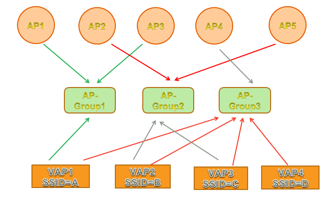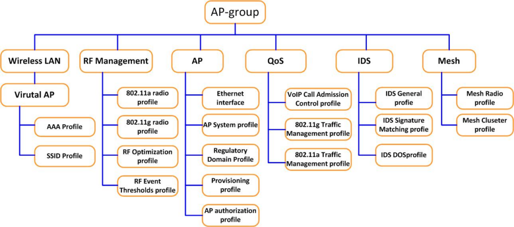 [AC1-wlan-ap-group-x]vap-profile y wlan 1 radio 1 //
