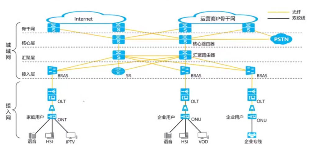 宽带语音接入–xDSL–同轴电缆宽带接入–光接入