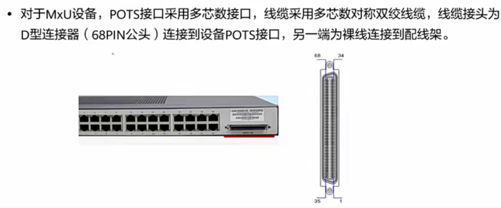 MxU设备使用D型POTS口,常见有68PIN公头