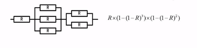 - 用串联公式计算整体可靠度 R X (1-(1-R)3) x (1-(1-R)2)