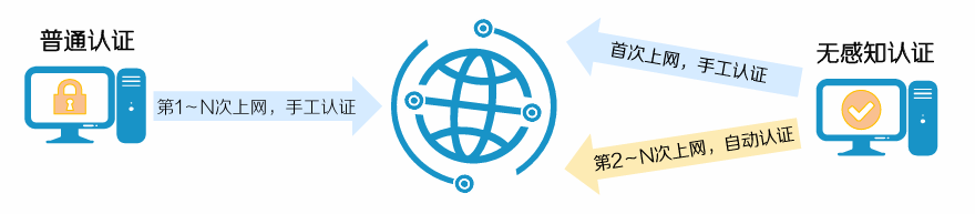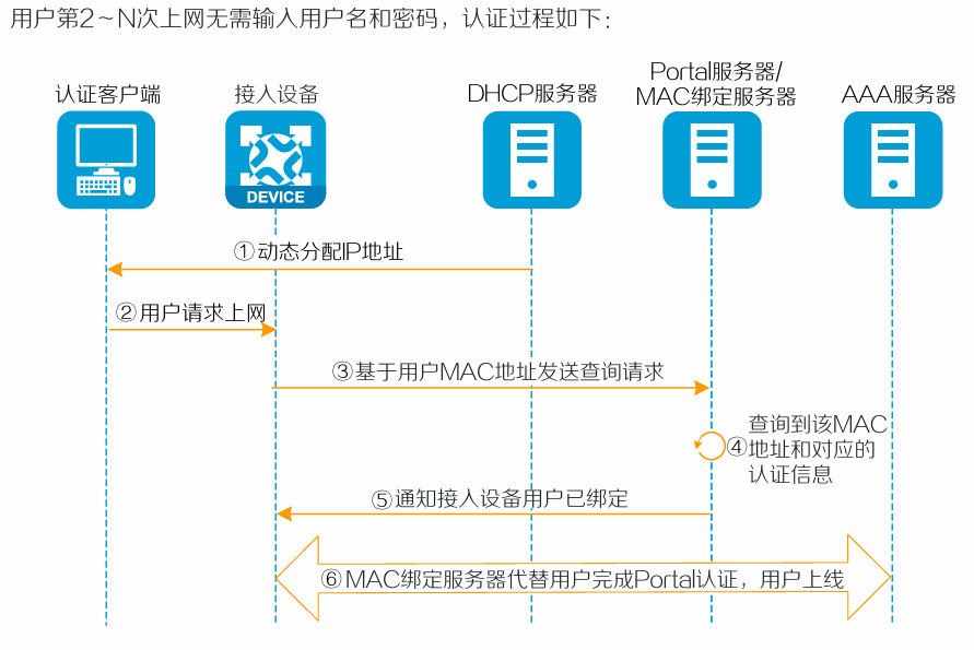 Portal无感知认证,是一种基于MAC地址的快速认证。用户仅需在首次上网时输入用户名和密码,后续上网时无需输入认证信息,自动完成Portal认证。无感知认证方式方便快捷,极大地提高了用户访问网络资源的效率。