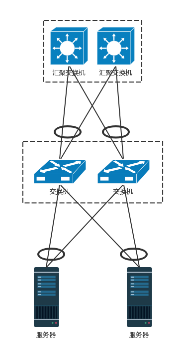 Stack 堆叠:将多个交换机形成一个逻辑的交换机,服务器通过多根线分配连到多个接入层交换机上,而接入层交换机多根线分别连接到多个交换机上,并且通过堆叠的私有协议,形成双活的连接方式。