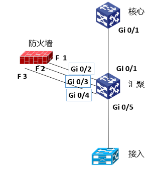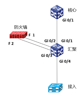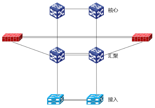 汇聚层,接入层,防火墙通常是双机或者堆叠,可以将上图重新绘制成如下 ;