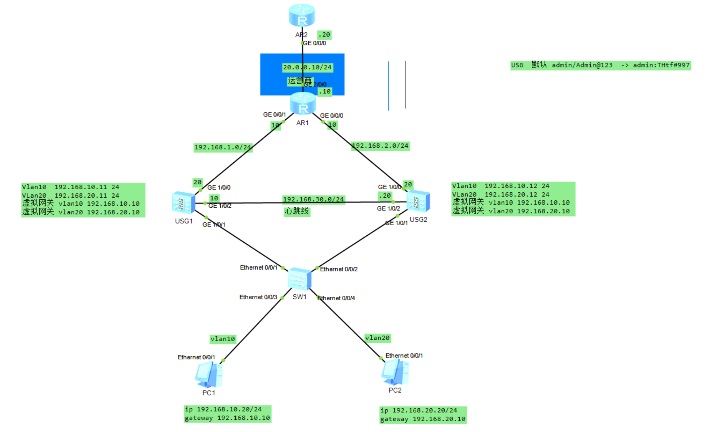 组网:PC–内网设备—USG6680出口设备–ISP;