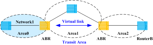 虚连接(Virtual link)是指在两台ABR之间通过一个非骨干区域建立的一条逻辑上的连接通道。