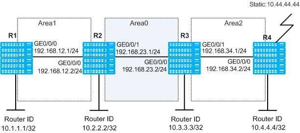 R2作为区域边界路由器(ABR)负责传递区域间路由信息,所以ABR必须同时知道骨干区和标准区域的路由信息。
