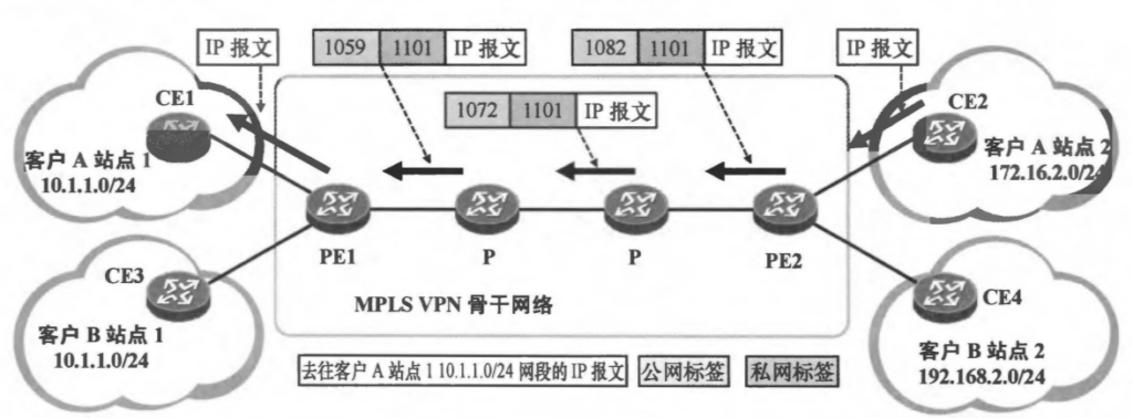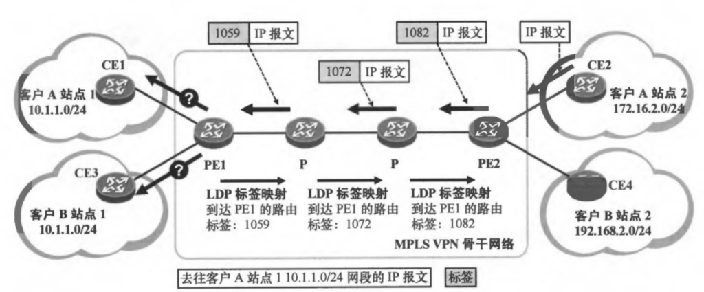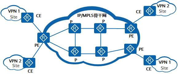 PE、P上配置MPLS基本能力和MPLS LDP,建立MPLS LSP公网隧道,传输VPN数据。