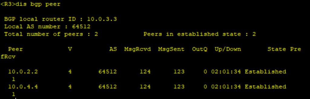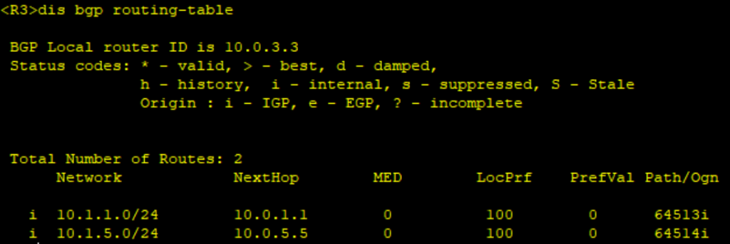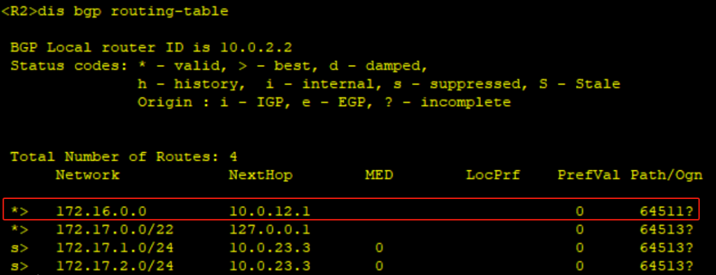 4、验证BGP路由表观察汇总后是否继承了AS-PATH 属性。